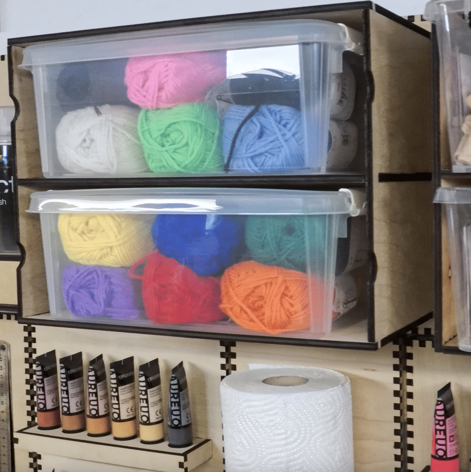 - Makers who love clear plastic boxes but hate when they’re always underfoot.
