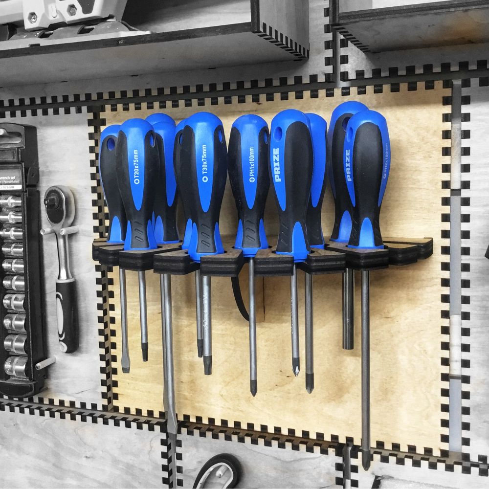 With our French Cleat Screwdriver Holder digital file, you can create a sleek, space-saving storage system that not only keeps your tools accessible but also turns your workspace into a tool gallery. Precision-cut, DIY-friendly, and designed for makers like you!